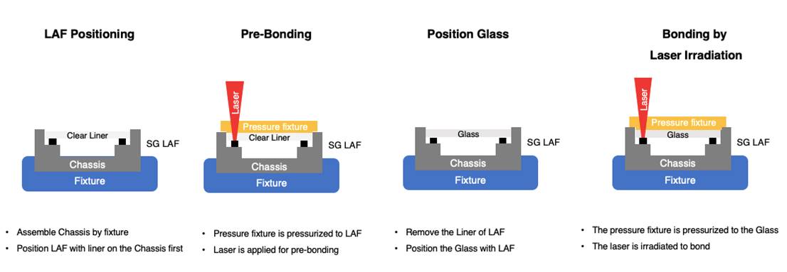 與兩種主流粘合方法相比,SG LAF提供了壓敏泡棉膠帶和點膠方法:
